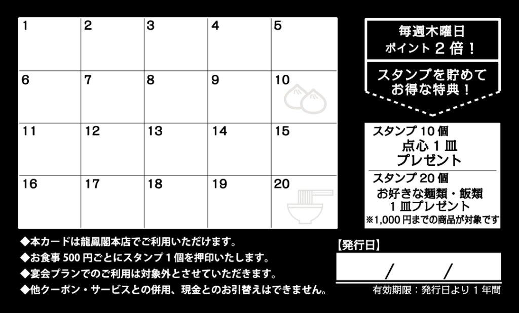 龍鳳閣では、ランチメニュー専用ポイントカードをご用意しております。