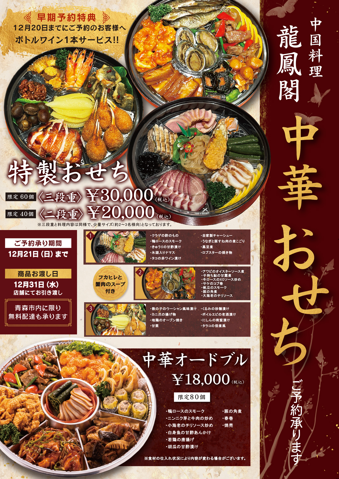 龍鳳閣のディナーメニューは、本格的な中国料理をお手頃にお楽しみいただけるよう、多彩なメニューをご用意しております。